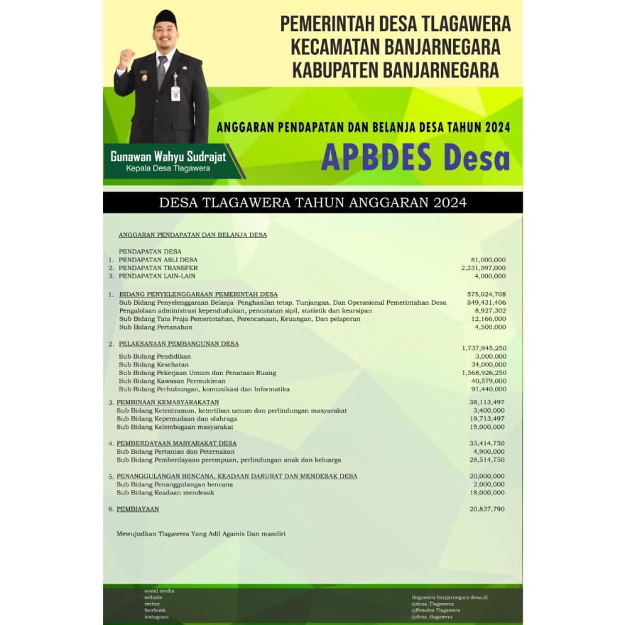 Musdesus atau Musyawarah Desa Khusus untuk membahas BLT DD Tahun Anggaran 2023 telah dilaksanakan, dihadiri oleh para ketua RT di desa Tlagawera, Ketua BPD beserta anggotanya, ketua lembaga desa dan juga Kasi PMD Kecamatan Banjarnegara.